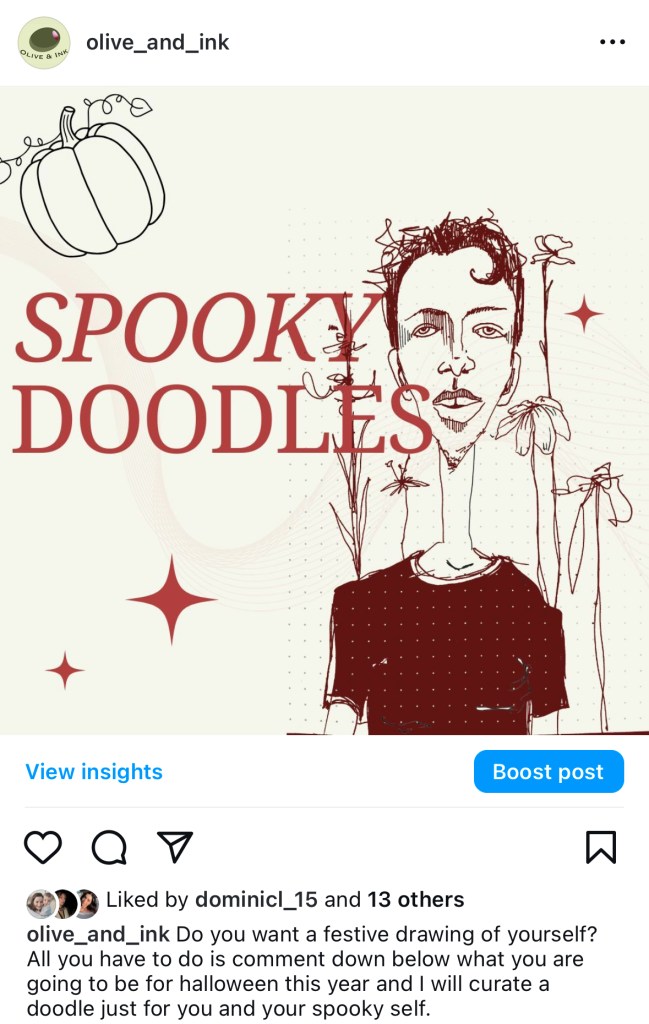Olive&Ink is my personal brand that markets my artwork to potential clients worldwide. This brand is in its early stages but includes an instagram dedicated to my artwork: