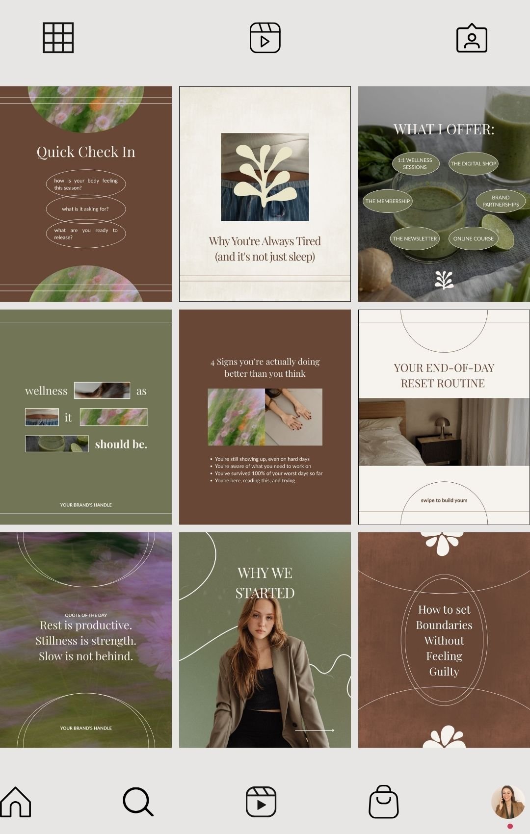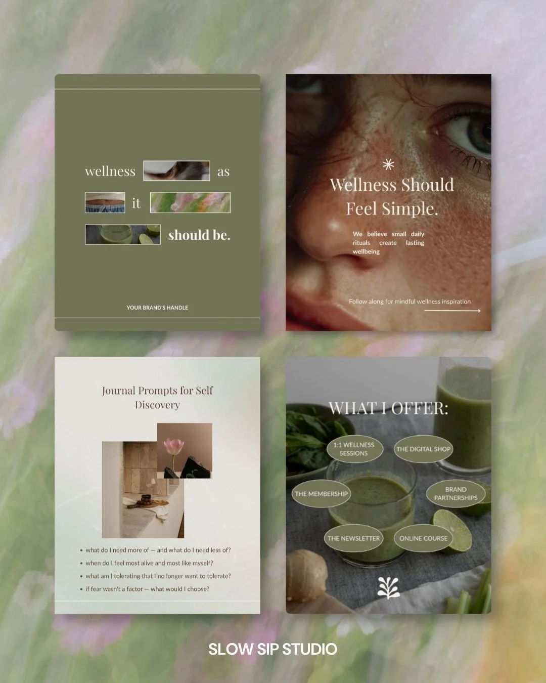 Designed for a specific buyer, not a broad one. The brief was simple: build the content library a wellness brand would actually want to use — slow, grounded, and visually aligned with the work they do.
